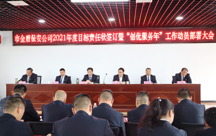 為進(jìn)一步明確公司2021年度各項工作任務(wù),突出以“創(chuàng)優(yōu)服務(wù)”為抓手的工作總基調(diào),動員公司各級干部員工鼓足干勁、砥礪前行,確保圓滿完成全年各項目標(biāo)任務(wù)。4月23日,市城控集團(tuán)所屬子公司市金盾保安公司2021年度目標(biāo)責(zé)任狀簽訂暨“創(chuàng)優(yōu)服務(wù)年”工作動員部署大會在市金盾保安培訓(xùn)公司多功能會議室舉行。公司領(lǐng)導(dǎo)班子成員、機(jī)關(guān)部室全體工作人員,各子(分)公司班子成員及綜合辦公室負(fù)責(zé)人共計45人參加了會議。