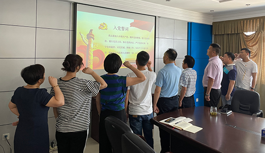 活動(dòng)中,該公司全體黨員奏唱國(guó)歌,集體學(xué)習(xí)《黨章》,10名6月份入黨的黨員重溫入黨誓詞,并領(lǐng)取了精美的政治生日賀卡和經(jīng)典的勵(lì)志讀物。