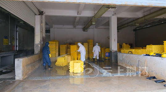 8月10日,記者在荊門市醫(yī)療廢物集中處置中心看到,身穿防護服的工作人員手提噴槍,對醫(yī)療廢物轉(zhuǎn)運箱進行消毒作業(yè),整個流程運轉(zhuǎn)高效且嚴謹有序。在現(xiàn)場,醫(yī)療廢棄物通過專用車輛轉(zhuǎn)運到中心后,首先就要消毒,再裝箱滅菌,整個滅菌時間近2小時。滅菌以后,醫(yī)療廢棄物再進行破碎、毀形,最后運輸?shù)教盥駡鲞M行專區(qū)填埋,整個流程達到了無害化標準。