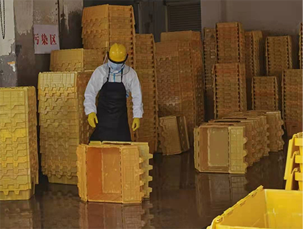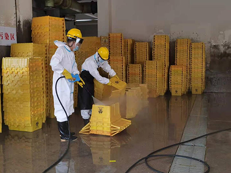 自2021年8月荊門發(fā)生疫情以來,醫(yī)療廢物產(chǎn)生量明顯增加,京環(huán)公司人員設(shè)備均處于超負(fù)荷運(yùn)轉(zhuǎn)狀態(tài),醫(yī)療廢物處置能力受到嚴(yán)峻考驗(yàn)。8月9日,城控集團(tuán)向公司征集一名志愿者支援京環(huán)公司?!拔胰?,我有經(jīng)驗(yàn)”,王家林再次主動(dòng)請(qǐng)戰(zhàn)。經(jīng)過公司綜合評(píng)估后,確定了由王家林再次支援京環(huán)公司。8月10日,王家林收拾好換洗衣物,與家人簡(jiǎn)單告別后,踏上了開往京環(huán)公司的車。到達(dá)京環(huán)公司后,經(jīng)過一線崗位操作流程和必備疫情防護(hù)技能培訓(xùn),根據(jù)京環(huán)公司統(tǒng)一調(diào)度安排,王家林迅速投入到了醫(yī)療廢棄物收集箱清洗的工作中。