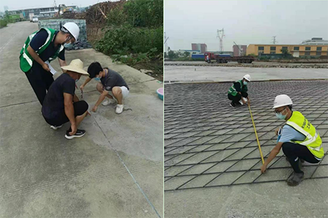 周丹和項目管理人員在現(xiàn)場進行測量核驗