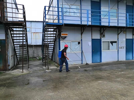 每天早晚對工人宿舍、食堂等重點區(qū)域進行清潔消毒