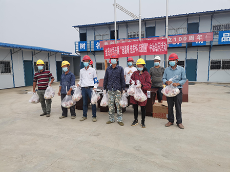 活動中,金茂公司負(fù)責(zé)人帶領(lǐng)公司黨員干部,一一走訪各個項目,將月餅等慰問品送到一線工人手中,實地查看了工地現(xiàn)場及工友居住環(huán)境,叮囑他們在工作中一定要嚴(yán)格遵守安全規(guī)章制度,做好自身安全防護,合理安排工作時間,把健康和安全放在首位。