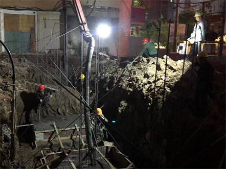 在研究院臨街門面改造和生產(chǎn)樓加裝電梯項目施工現(xiàn)場,轟鳴的機器開足了馬力,基礎(chǔ)開挖、地基驗槽、澆注混凝土墊層、支模板、制作鋼筋、驗筋后澆基礎(chǔ)混凝土等工作有序進行中,工地上到處可見公司負責人和監(jiān)理人員忙碌的身影,一片熱火朝天的施工景象。他們在這個長假里放棄與親朋好友團聚,堅守工地,盡職盡責,一手抓疫情防控,一手抓質(zhì)量安全。