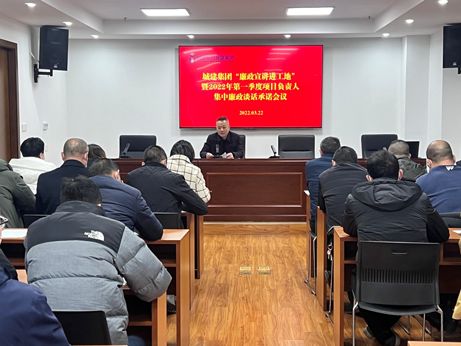 近日,市城控集團(tuán)直屬子公司城建集團(tuán)在雙喜大廈20樓會(huì)議室召開(kāi)“廉政宣講進(jìn)工地”暨2022年第一季度項(xiàng)目負(fù)責(zé)人集中廉政談話承諾會(huì)議。