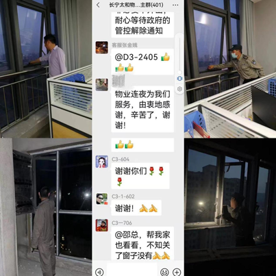 “尊敬的業(yè)主您好!面對突如其來的疫情,感謝各位業(yè)主的理解和配合!核酸篩查管控期間家里有困難、有需要幫助的孤寡老人或有需要照顧的孩子可以與樓棟管家或物業(yè)中心聯(lián)系。電話……”4月11日這天,這樣一條信息刷遍了長寧太和項(xiàng)目各個(gè)業(yè)主微信群,雖然內(nèi)容簡短卻句句暖人心。業(yè)主紛紛在群里豎起了大拇指,為服務(wù)中心一如既往的“真心、細(xì)心、關(guān)心、貼心、暖心”服務(wù)點(diǎn)贊!