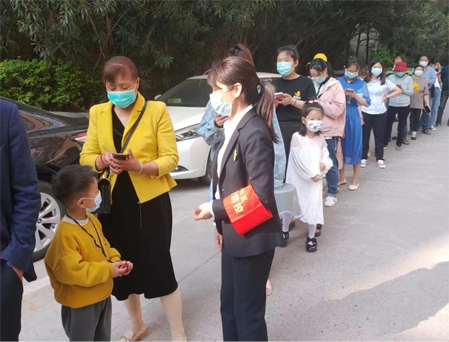 很快檢測點(diǎn)前就排起了長隊(duì),此時(shí)的物業(yè)工作人員顧不上渾身疲憊,又馬不停蹄地全力維持現(xiàn)場秩序,引導(dǎo)業(yè)主保持一米距離,并提醒大家提前出示健康碼,面對小區(qū)內(nèi)老年人不會(huì)使用手機(jī)的情況,工作人員一一耐心進(jìn)行指導(dǎo)操作。在物業(yè)工作人員的不懈努力下,現(xiàn)場秩序井然,確保了核酸采樣工作快速、高效、有序地開展。盡管忙碌了一上午,他們卻沒有人喊過一聲苦,叫過一聲累,以實(shí)際行動(dòng)履行了城控物業(yè)人的責(zé)任擔(dān)當(dāng)。
