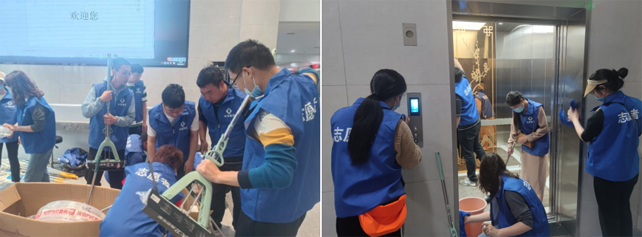 龍泉大廈內(nèi),青年志愿者們按照劃分區(qū)域,全身心投入到衛(wèi)生清掃中。有的拖地掃地,有的用毛巾擦拭污跡灰塵,有的來回運送清水和污水……大家熱情高漲、干勁十足,氣氛十分熱烈。經(jīng)過兩個多小時的打掃,各個區(qū)域環(huán)境衛(wèi)生整潔一新。