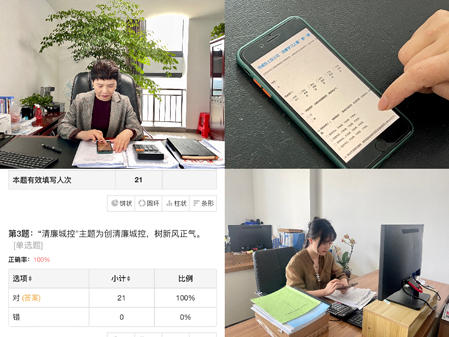 5月9日,市城控土投公司負責人帶頭完成首次答題,測試成績均優(yōu)異。此后,全體干部職工每周答題累計個人積分,作為年底評選“清廉學習之星”的依據(jù)并納入年終考評。