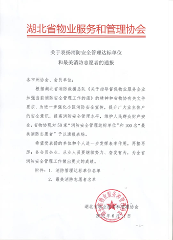 近日,市城控集團直屬子公司市城控物業(yè)公司雙喜大廈項目服務中心被湖北省物業(yè)服務和管理協(xié)會評為“湖北省消防安全管理達標單位”。在經(jīng)過嚴格審核、層層篩選后,該項目最終從湖北省眾多優(yōu)秀物業(yè)公司中脫穎而出,獲此殊榮。