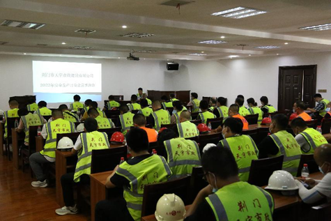 為進(jìn)一步強(qiáng)化安全意識(shí),筑牢安全生產(chǎn)防線,圍繞“遵守安全生產(chǎn)法,當(dāng)好第一責(zé)任人”這一主題,近日,市城控集團(tuán)所屬子公司天宇市政公司在月亮湖北路(高店立交橋-白廟路)改造工程EPC總承包項(xiàng)目部組織開(kāi)展了2022年安全生產(chǎn)月系列活動(dòng)。本次活動(dòng)主要以室內(nèi)專(zhuān)題會(huì)議和施工現(xiàn)場(chǎng)實(shí)戰(zhàn)演練相結(jié)合的形式開(kāi)展,天宇市政公司全體班子成員、各分公司、項(xiàng)目部及施工隊(duì)伍代表共45人參加了活動(dòng)。