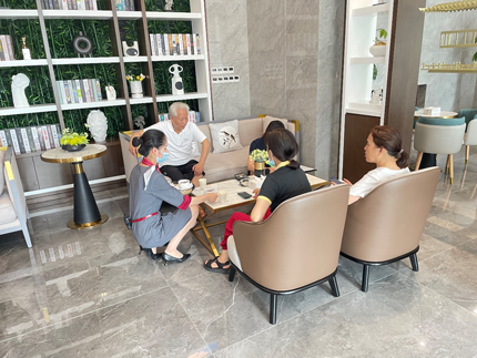 在前期學習、借鑒并引進高端案場物業(yè)服務的基礎(chǔ)上,今年來,中房公司自我加壓、苦練內(nèi)功,取經(jīng)頭部房企案場服務經(jīng)驗,組建公司自有案場物業(yè)服務團隊,并就客戶接待、茶點準備、室內(nèi)保潔、安保管理等多方面展開專業(yè)培訓,快速提升案場工作人員綜合素質(zhì)和營銷接待能力。