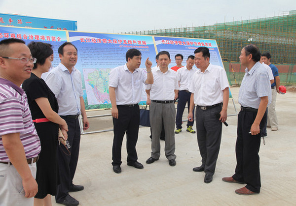 圖為鐘鋼行長(zhǎng)(右三)調(diào)研綠色生態(tài)科技城項(xiàng)目現(xiàn)場(chǎng)