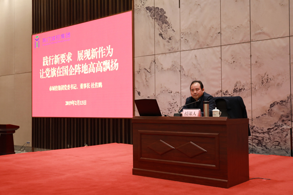 隨后,趙俊同志發(fā)表重要講話。趙俊指出,2018年,市城控集團(tuán)在市委、市政府的正確領(lǐng)導(dǎo)下,取得了不凡成就,市委、市政府給予高度肯定。這一年,城控集團(tuán)戰(zhàn)略引領(lǐng)持續(xù)深化,總部引領(lǐng)持續(xù)增強(qiáng),文化引領(lǐng)持續(xù)推進(jìn);雖然融資“腸梗阻”,但資金保障有力;雖然發(fā)展困難諸多,但保持了昂揚(yáng)向上的精神風(fēng)貌;雖然面臨各種矛盾,但保持了穩(wěn)定大局。一年來(lái),城控集團(tuán)生產(chǎn)經(jīng)營(yíng)穩(wěn)中有進(jìn),企業(yè)發(fā)展平穩(wěn)有序 ;重大工程持續(xù)推進(jìn),集群效應(yīng)更加顯著;總部引領(lǐng)不斷深入,八大產(chǎn)業(yè)板塊協(xié)同發(fā)展;綜合管控不斷加強(qiáng),運(yùn)行質(zhì)量持續(xù)優(yōu)化;主動(dòng)承擔(dān)社會(huì)責(zé)任,全力保障社會(huì)穩(wěn)定;貫徹落實(shí)十九大精神,黨建工作成效顯著。這些成績(jī)的取得,得益于市委、市政府的正確領(lǐng)導(dǎo),得益于城控堅(jiān)強(qiáng)有力的領(lǐng)導(dǎo)班子,得益于集團(tuán)上下一心,協(xié)同發(fā)展。