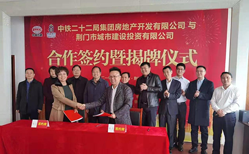 3月3日,中鐵二十二局集團(tuán)房地產(chǎn)開發(fā)有限公司與市城控集團(tuán)直屬子公司荊門市城市建設(shè)投資有限公司合作簽約暨揭牌儀式在荊門京琨置業(yè)有限責(zé)任公司舉行。市城控集團(tuán)黨委書記、董事長杜佐鵬,中鐵二十二局集團(tuán)地產(chǎn)公司黨委書記、董事長熊乾,市城控集團(tuán)黨委委員、副總經(jīng)理兼市城投公司黨委書記、董事長魯愛群等相關(guān)人員參加。