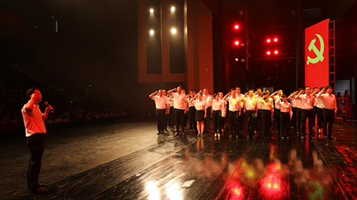 文藝匯演中,舉行了新黨員入黨宣誓儀式,在市城控集團黨委副書記張本華帶領下,新黨員上臺宣誓,面對鮮紅的黨旗莊嚴承諾,表達為共產(chǎn)主義事業(yè)奮斗終身的決心和信念。