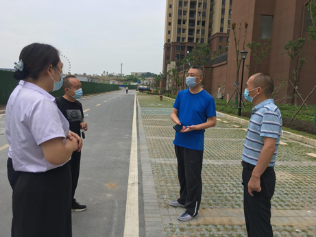 在雙喜大廈項(xiàng)目,江泉一行實(shí)地檢查了園區(qū)封閉情況、環(huán)境消殺、人員和車輛進(jìn)出管理等方面工作。截止至8月7日凌晨3點(diǎn),雙喜大廈項(xiàng)目工作人員已連夜加班加點(diǎn)完成了園區(qū)各出入口近百米的封閉圍板,為業(yè)主筑起一道堅(jiān)固的“防護(hù)墻”,只保留園區(qū)東入口作為車輛和人員進(jìn)出通道,嚴(yán)格實(shí)行“亮碼、測溫、戴口罩”三要素措施。江泉對(duì)項(xiàng)目全體工作人員不怕苦、不怕累的精神給予了充分肯定。