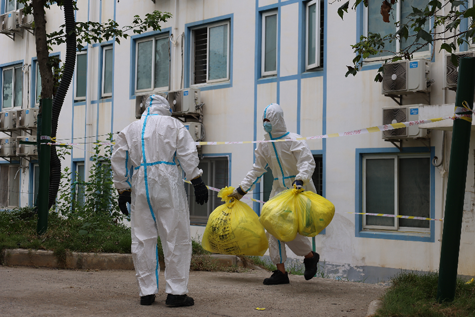 京環(huán)公司員工在某留觀點(diǎn)開展醫(yī)廢和涉疫垃圾清運(yùn)工作
