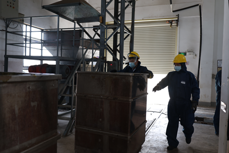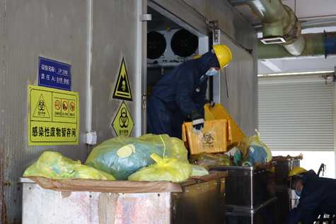 志愿者在醫(yī)廢處置車間工作
