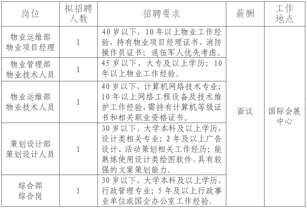 荊門(mén)玖伊園科技有限公司為荊門(mén)市城市建設(shè)投資控股集團(tuán)有限公司(以下簡(jiǎn)稱(chēng)城控集團(tuán))所屬公司,成立于2017年5月,注冊(cè)資本金1000萬(wàn)元,主營(yíng)業(yè)務(wù)為場(chǎng)館管理、智慧運(yùn)營(yíng)、招商引資、活動(dòng)策劃等?,F(xiàn)因工作需要,面向社會(huì)公開(kāi)招聘5名工作人員。相關(guān)招聘工作公告如下: