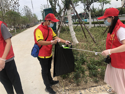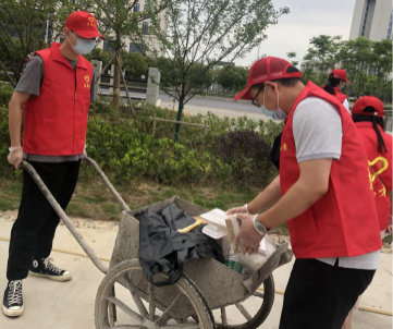 活動現(xiàn)場,20多名志愿者身穿志愿者紅色馬甲,頭戴志愿者紅色帽子,他們高舉司旗和志愿者旗幟,現(xiàn)場猶如一片片火紅的云彩鑲嵌在場館周圍,這一抹“志愿紅”和志愿者們的勞動熱情把現(xiàn)場妝點得格外靚麗多彩。志愿者們手拿鉗子、垃圾袋,推著兩輪斗車,撿拾綠化帶中的白色垃圾、搬運現(xiàn)場廢棄建筑材料。他們分為兩組,分工明確,密切協(xié)作,沿著場館周圍地毯式搜尋前進,不放過任何一處死角。志愿者們不怕臟、不怕累,發(fā)揚吃苦耐勞精神,個個干得歡快自如,熱情高漲,勞動現(xiàn)場不時傳來一陣陣歡聲笑語。經(jīng)過兩個小時的奮戰(zhàn),場館外圍公共區(qū)域的雜物和綠化帶中的白色垃圾被大家清理得干干凈凈,整個項目現(xiàn)場干凈整潔,給人煥然一新的感覺。
